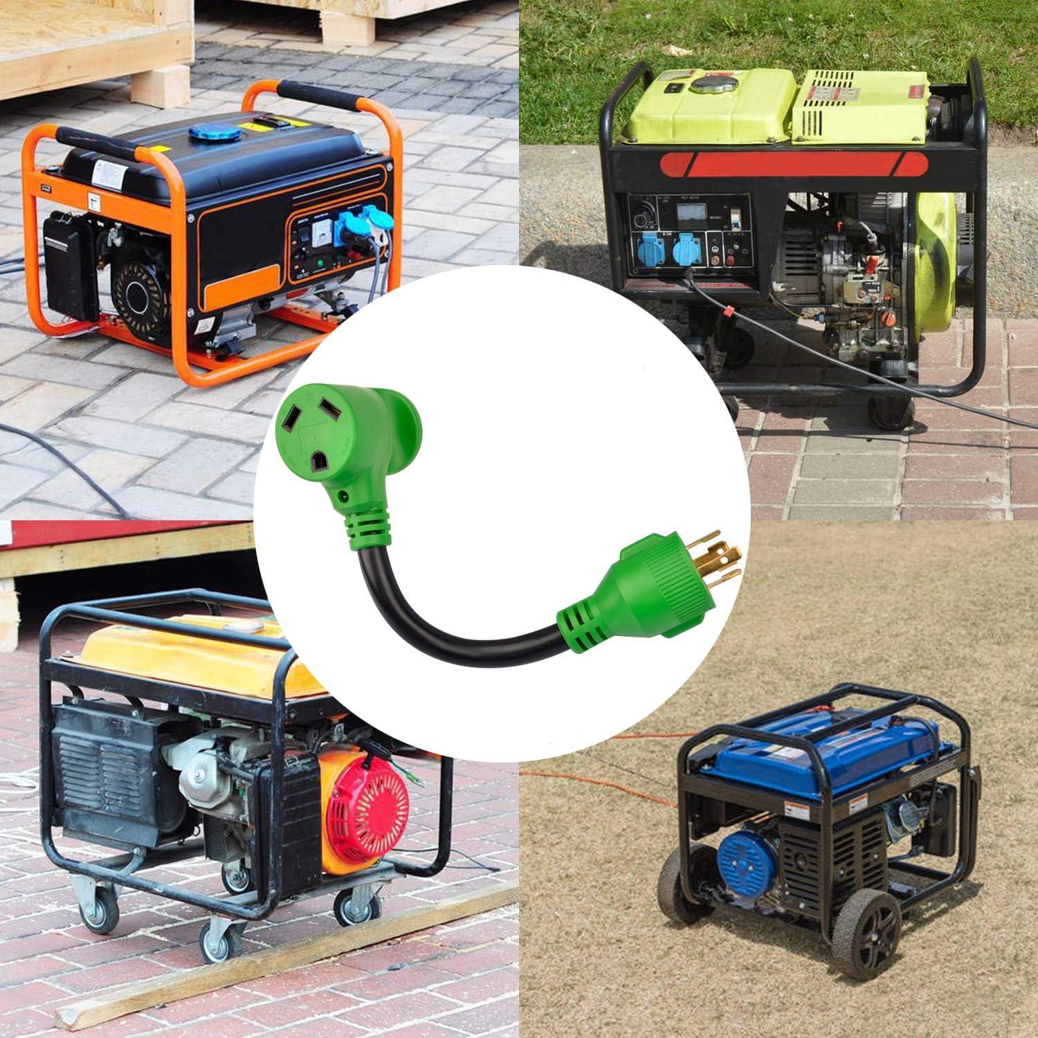 RVMATE 4 Prong 12 Inch 30 Amp to 30 Amp RV Generator Adapter Cord ETL Certified, STW 10/4, L14-30P Male Plug to TT-30R Female Connector with LED Indicator(3 PRONG 30A TO 50A)