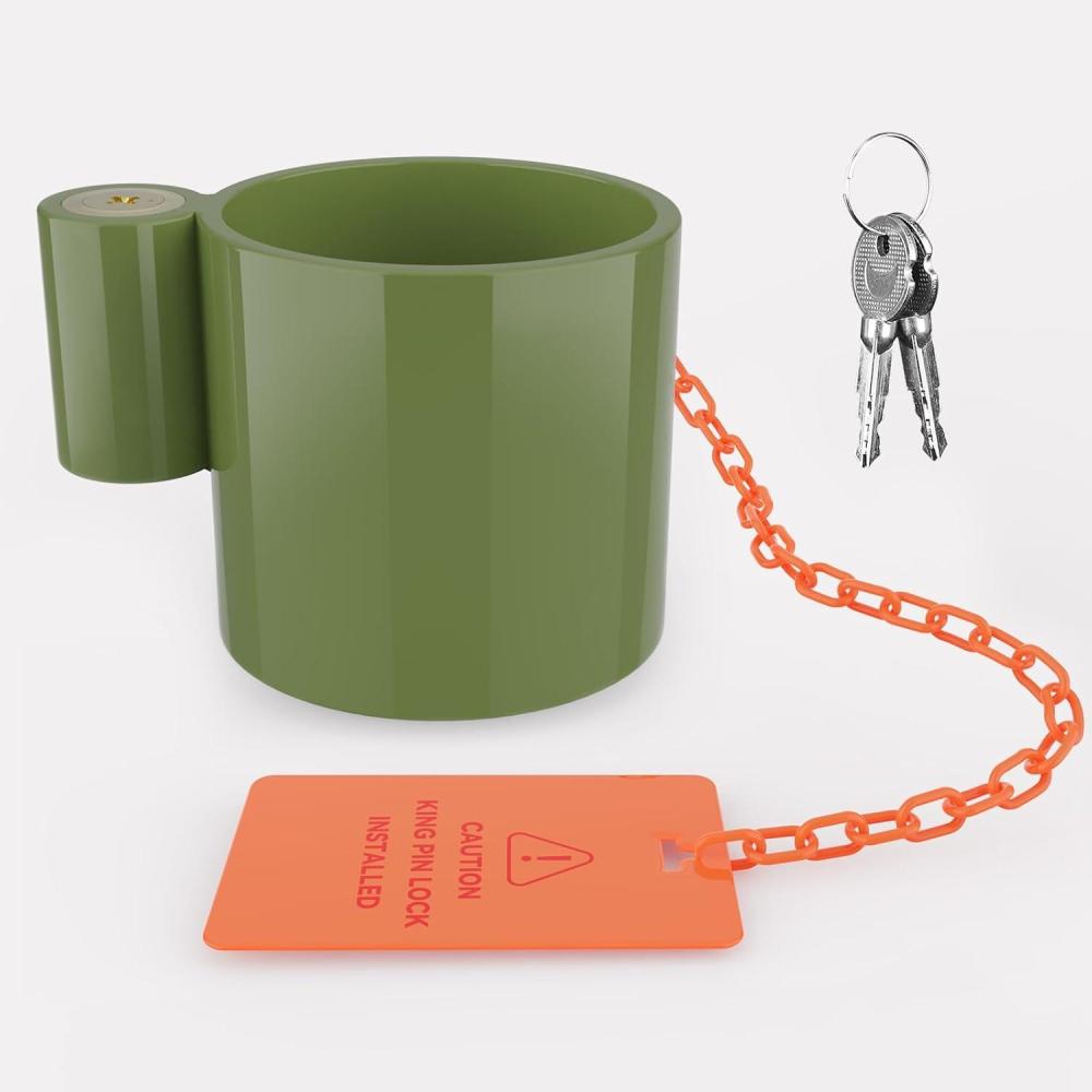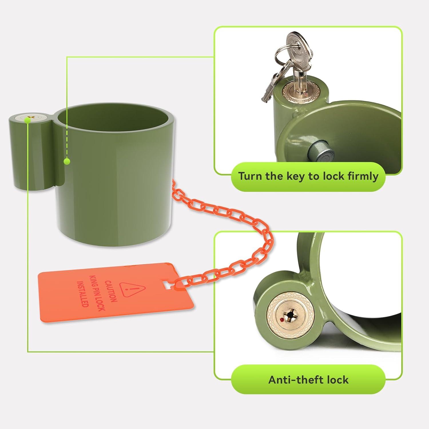 imageRVMATE 5th Wheel Lock Heavy Duty Steel King Pin Lock with AntiTheft Warning Tag for 5th WheelSemi TrailersRVsContainersGreen