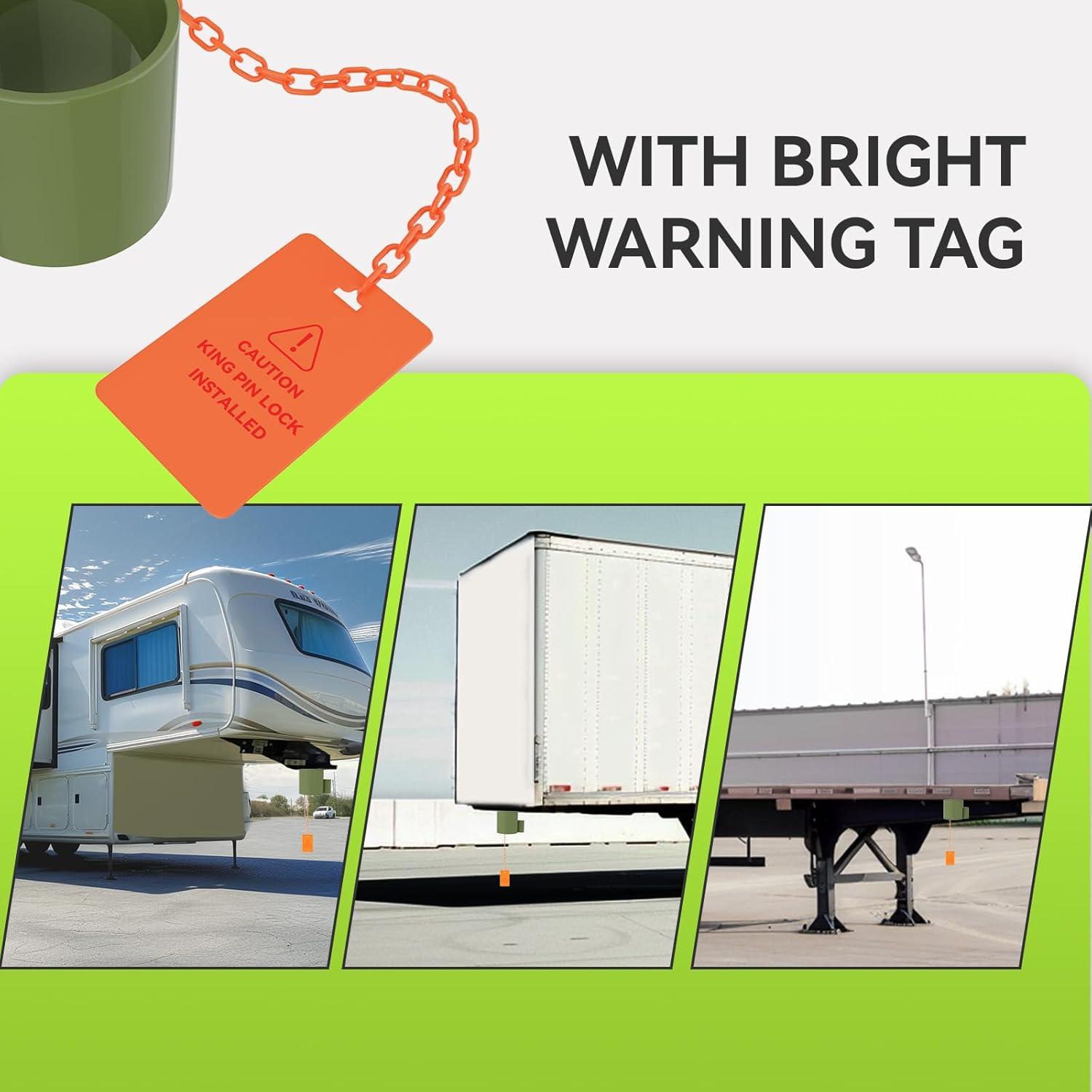 [Keep Your 5th Wheel Secure] : King pin lock can prevent thieves from connecting your fifth wheel kingpin and avoid unauthorized movement. The durable construction, eye-catching yellow lock and tag serve as a warning and deterrent against theft to keep your 5th wheel secure.