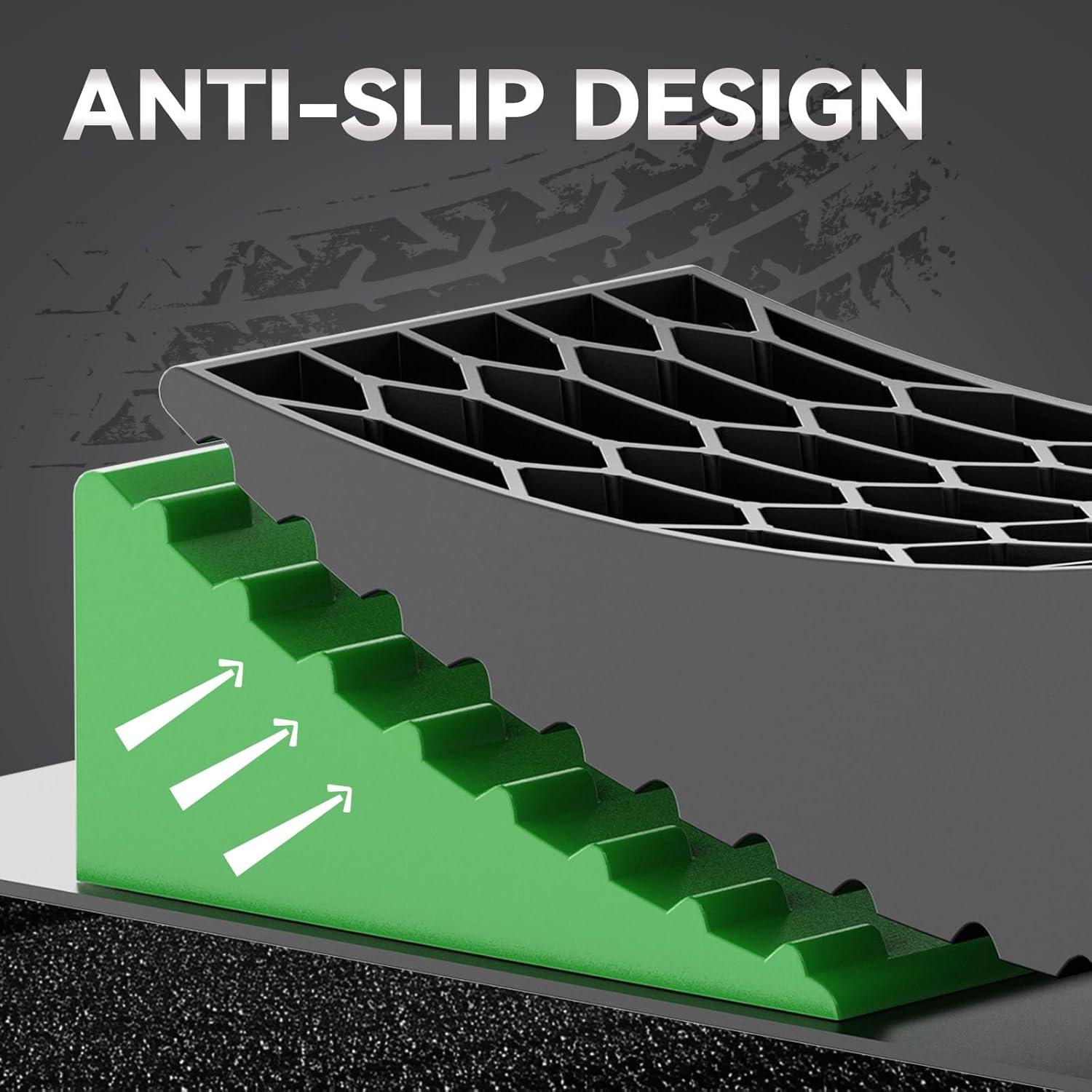 DOUBLE ANTI-SLIP DESIGN: The precised gear mesh is designed to prevent slippage between the levelers and chocks. And these still come with two thickened rubber non slip mats to further ensure that the leveling system does not slip with the ground.