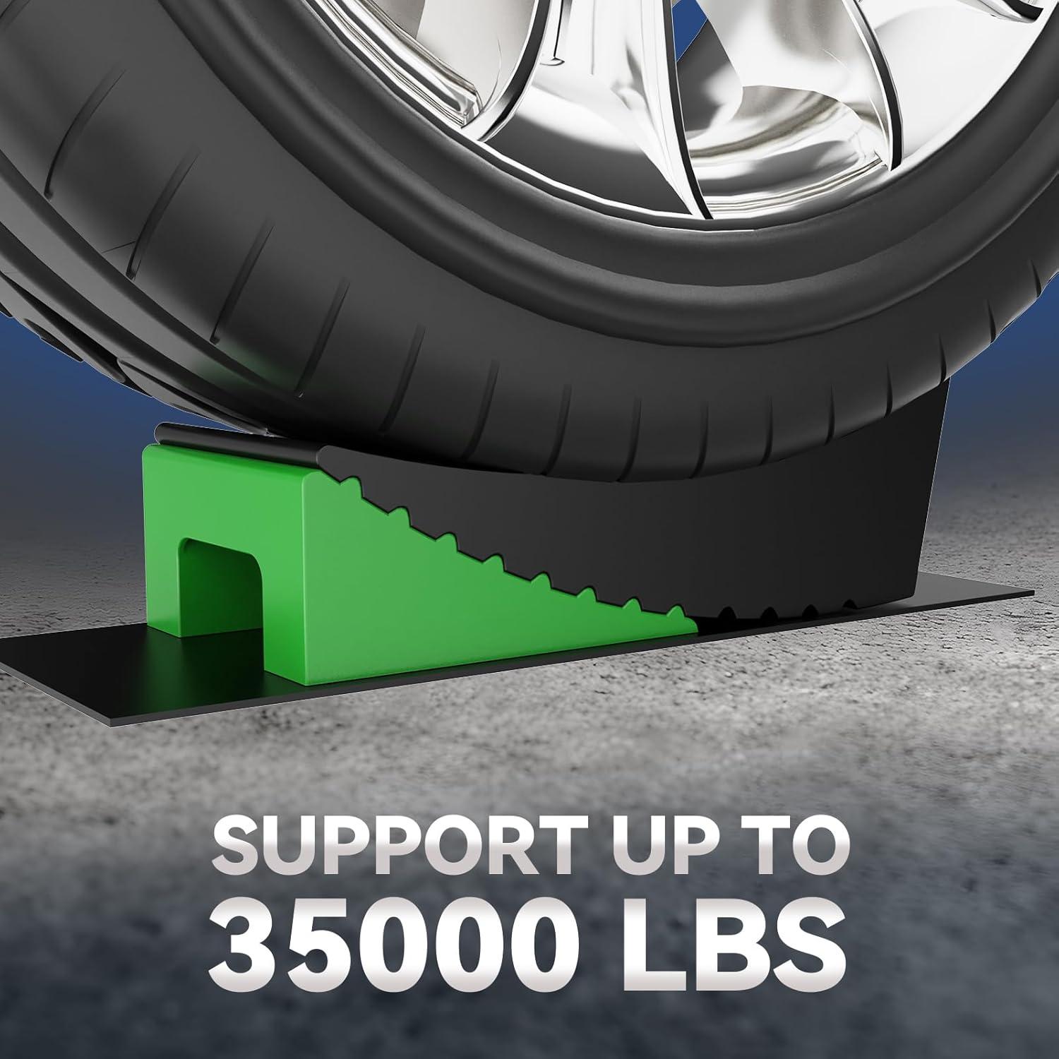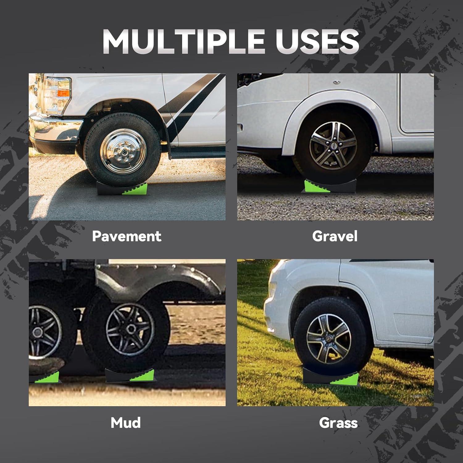 HEAVY-DUTY DESIGN: Made of high-density polyethylene which is a tough design. Works solidly with vehicles weighing up to 35,000 lbs and with tires up to 32″ diameter. Compatible with most RVs, motorhomes, dual axle trailers, and trailers.