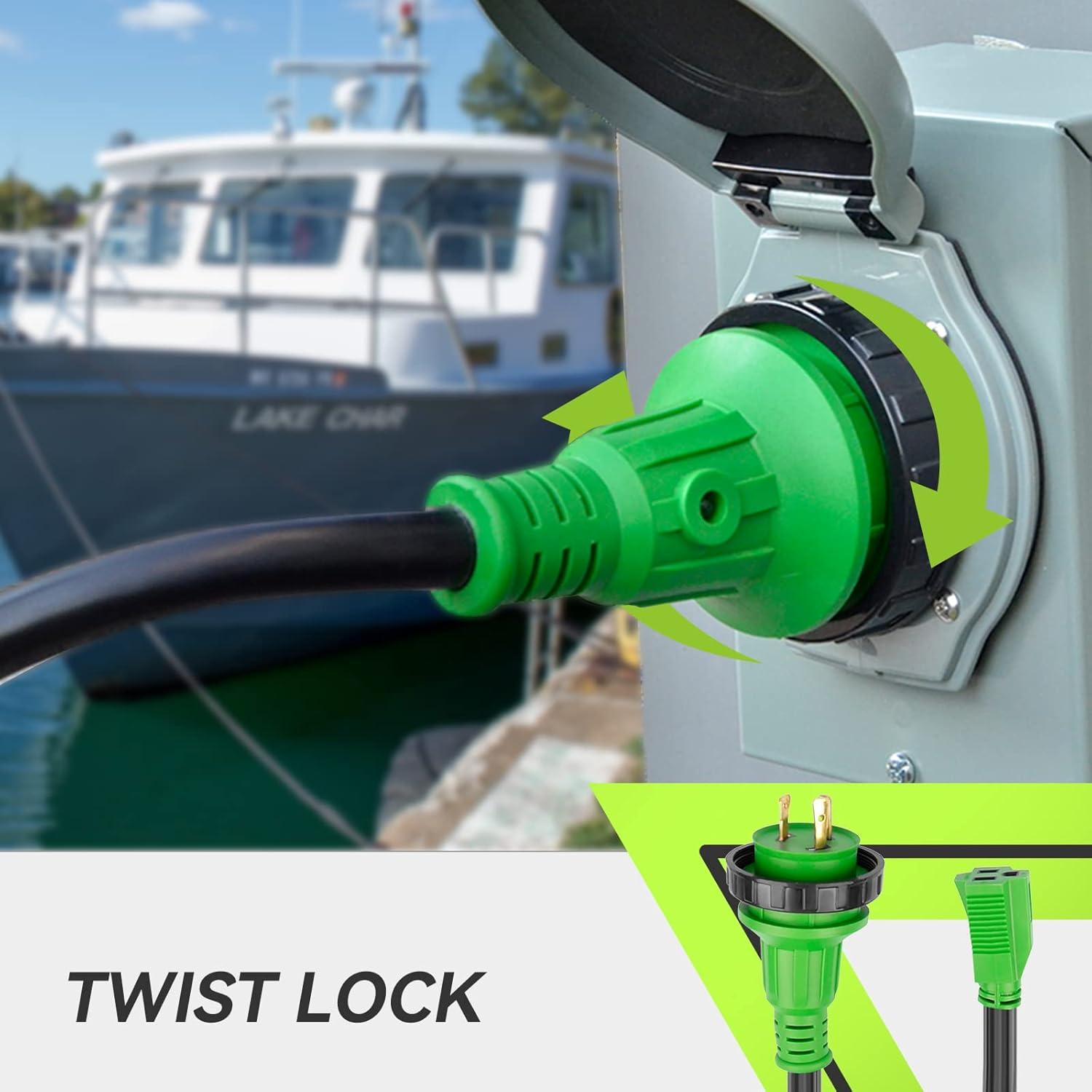 18'' 30AMP NEMA L5-30P lock male to 15AMP 5-15R female Shore Power Adapter cord