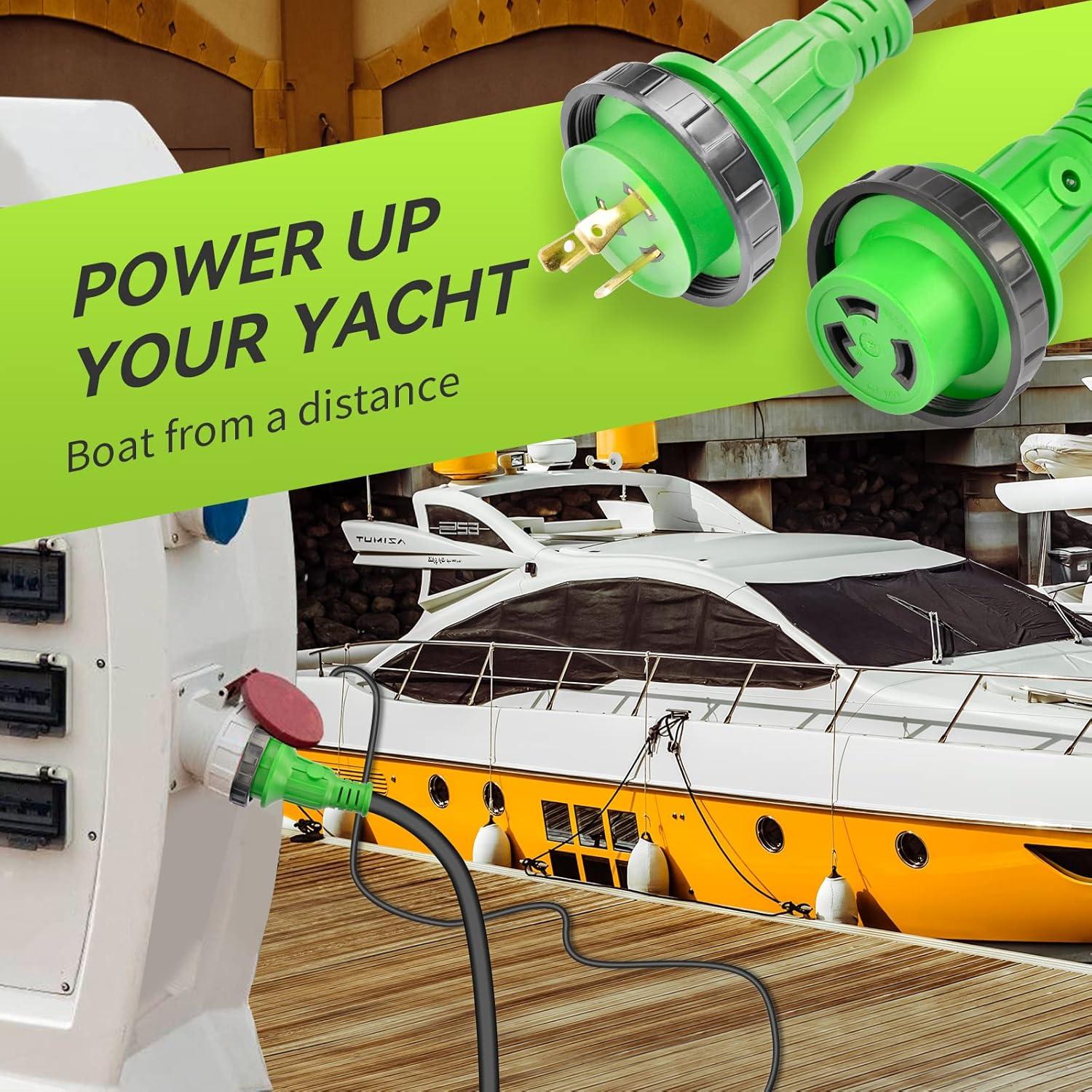 50 feet NEMA L5-30P to L5-30R stow 10 gauge 3 prong marine shore power extension cord