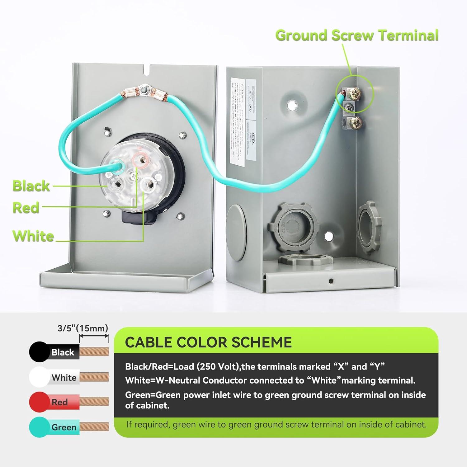 🚩【Weatherproof & Anti-rust】: The power inlet box is constructed of steel with durable, anti-corrosive powder-coated paint. When not in use, the weatherproof flip cover can be closed to prevent moisture from entering the connector inlet. PATENTED.