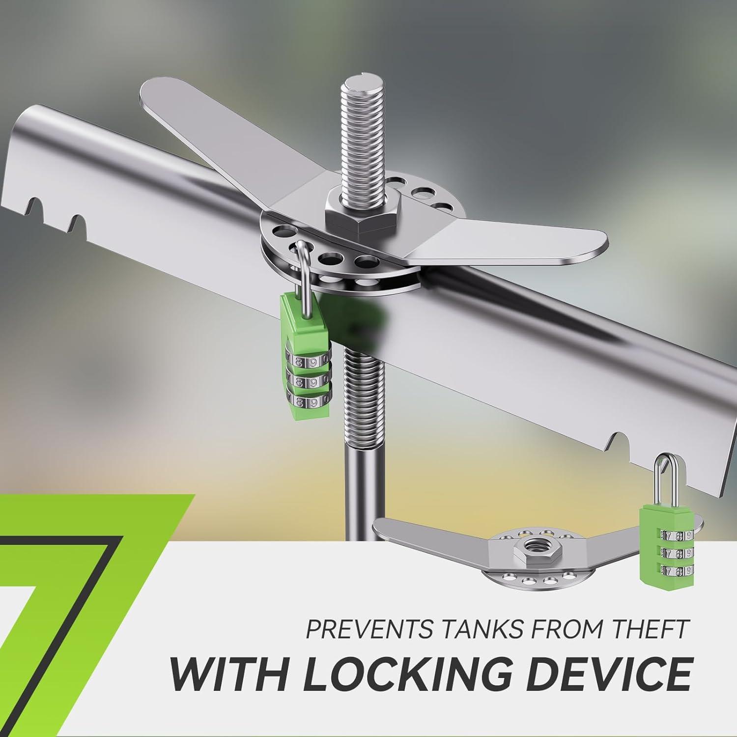 LOCKING DEVICE: Equipped with a locking device that provides an extra layer of security to prevent theft or tampering of propane tanks.