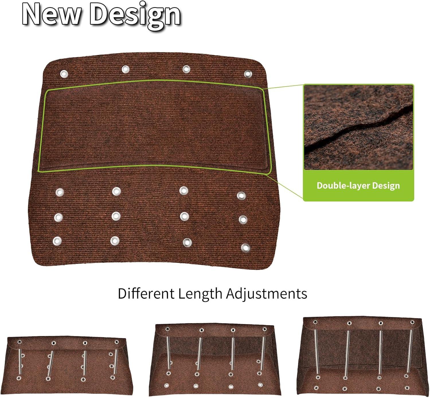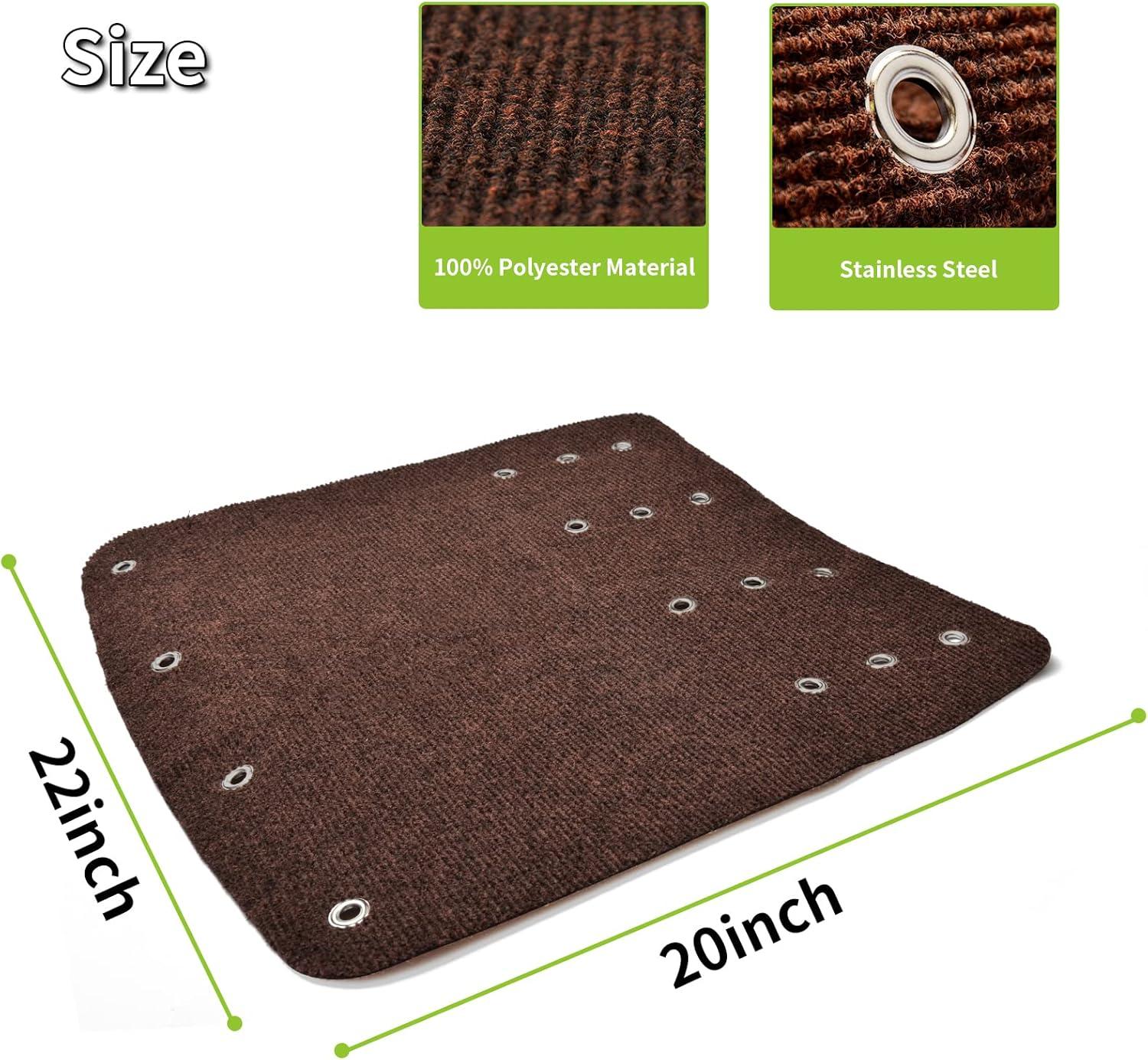 Size – each carpet is 20 inches long and 22 inches wide, Each camper step rug comes with 4 sets of pairing grommets and springs for three different step depths. It can cover steps varying from 8 to 10 inches depth, and can accommodate a curved ladder.