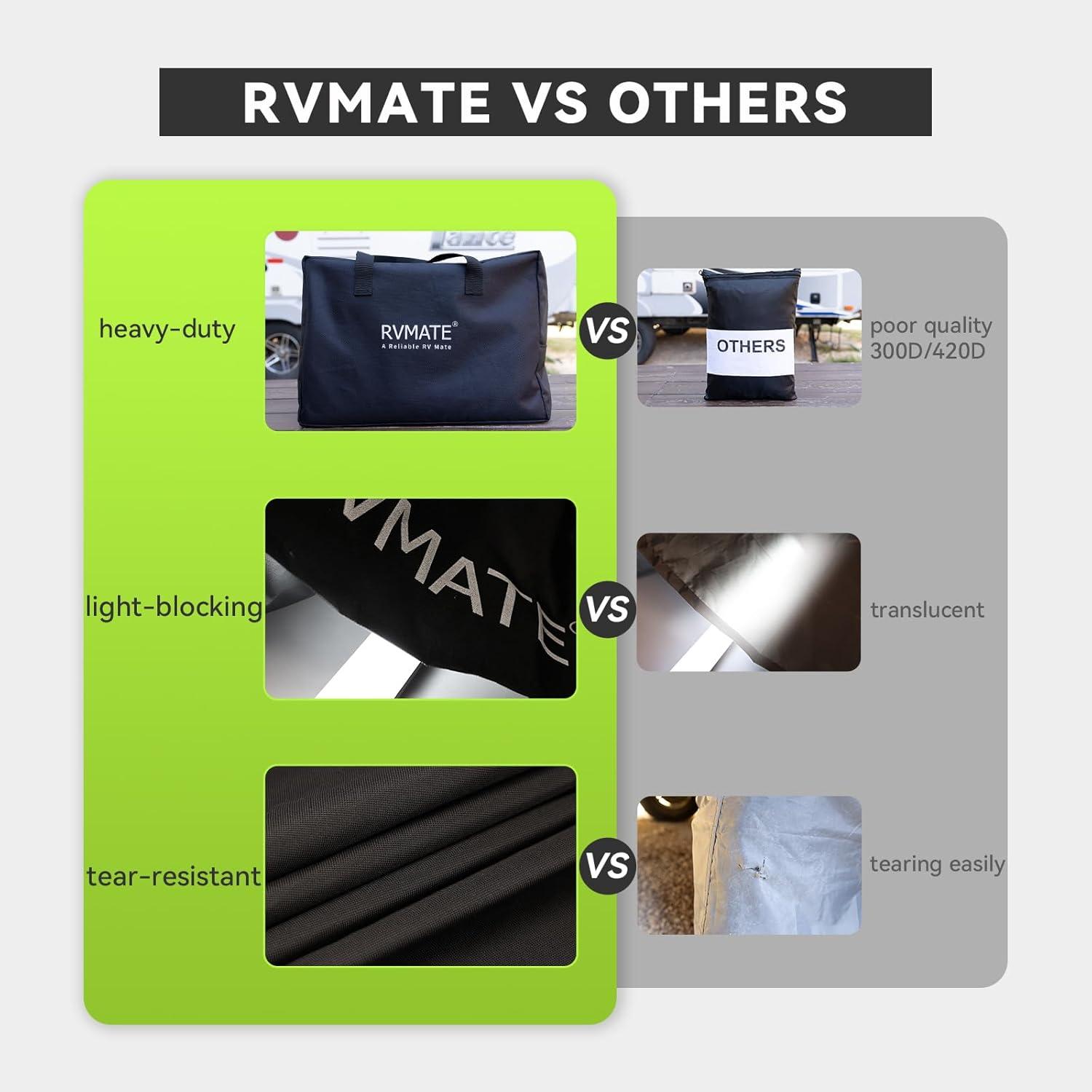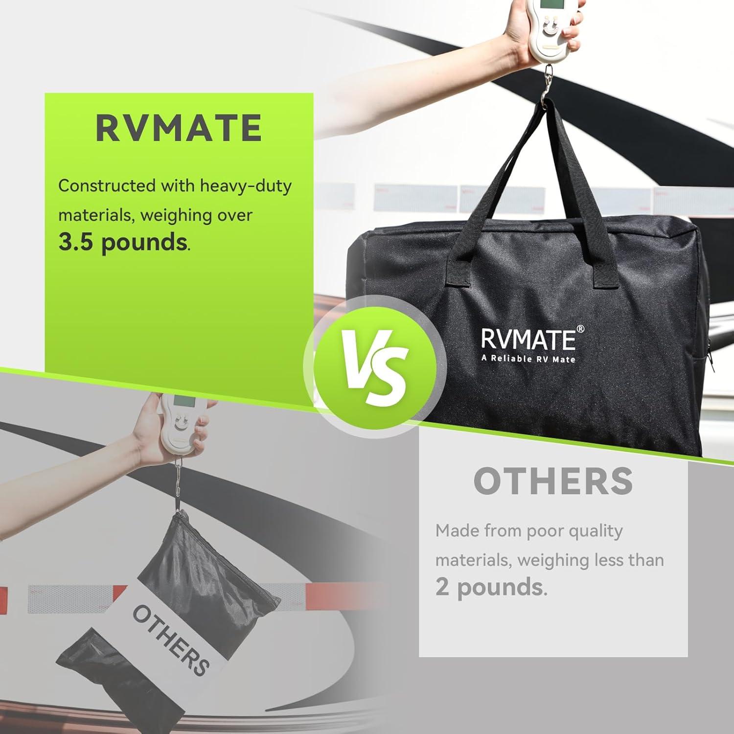 【Function】RVMATE Double wheel tire cover is made of heavy-duty 600D Oxford fabric with UV-resistant surface and PVC waterproof coating, protecting your tires from sunlight, snow, rust and dirt. Keep your tires in good condition even in bad weather.