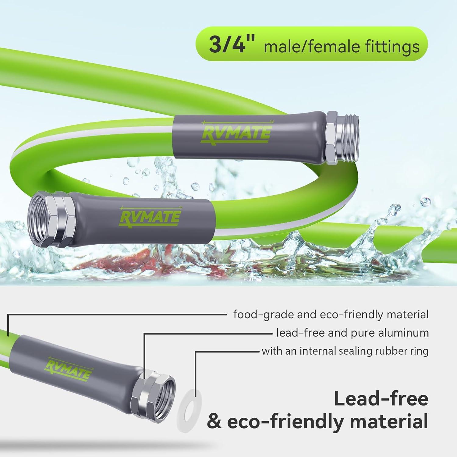 RVMATE RV Water Hose 25FT, 5/8” Inner Diameter Drinking Water Hose Lead-free, No Leaking Garden Hose For RV/Trailer/Camping, RV Accessories(Green)