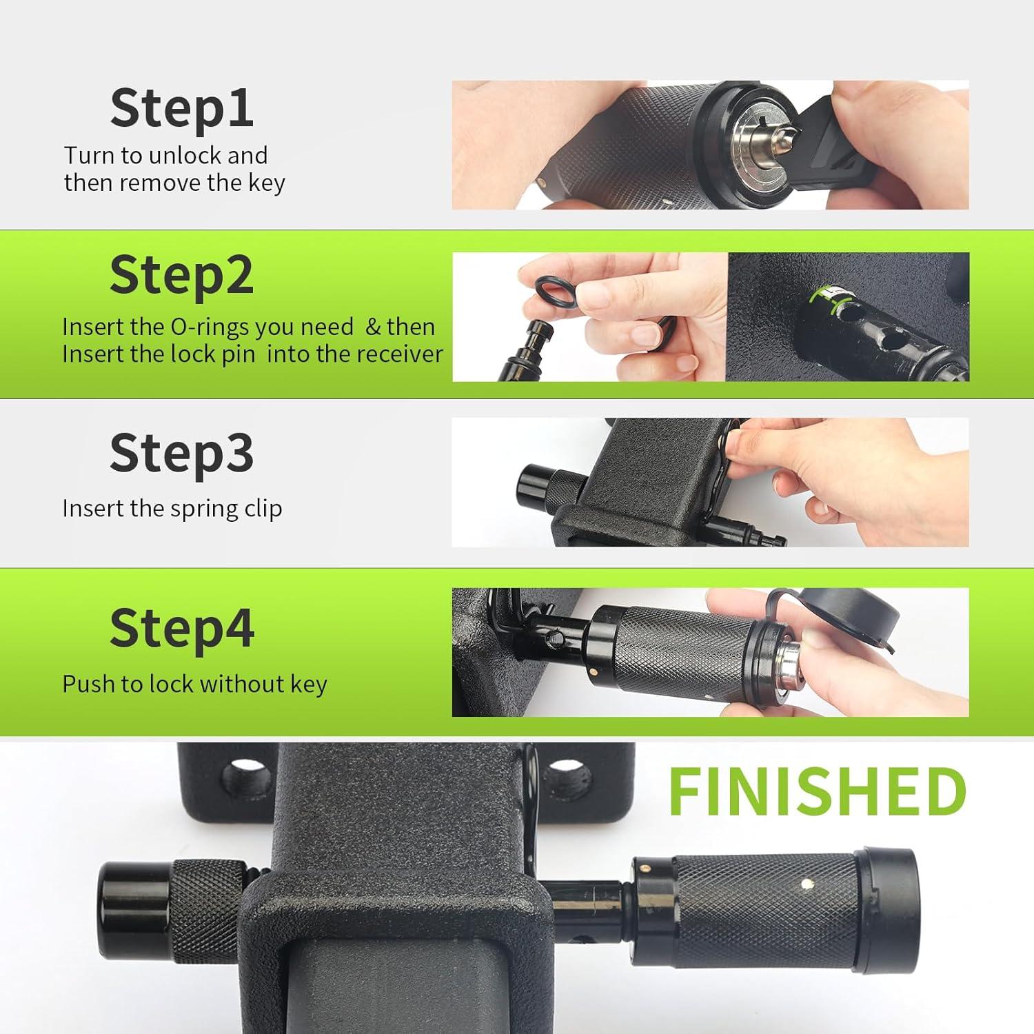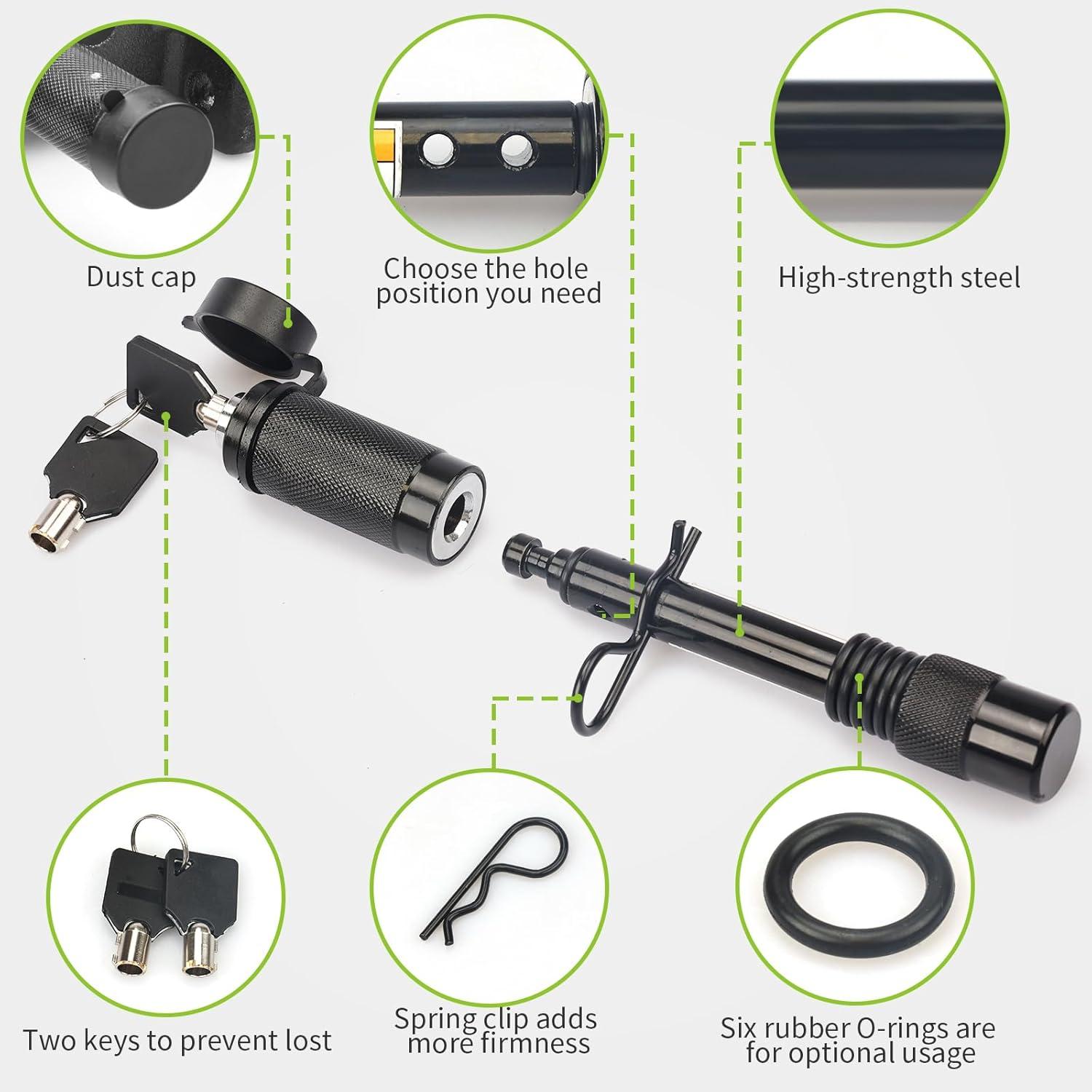Useful Accessories: The rubber O-rings will prevent any rattling and can hold the hitch pin in place, you can add or remove the O-rings to fit different receivers. The safety clip provides additional protection by inserting into the hole.